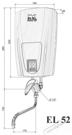 nyomás nélküli csatlakoztatásra tervezték egyetlen felhasználási pontra, mosogató vagy konyhai mosogató fölé történő beszereléssel. Szinte bárhol használható - otthon, a nyaralóban, a szociális létesítményekben és sok más helyen. Az ELÍZ EL 52 modell két fűtőelemmel rendelkezik, és három fokozatban - 1,5 / 3,5 / 5 kW - állítható a teljesítmény. A fűtőelemek rejtve vannak, így védve vannak a vízkőfelhalmozódás hatásaitól.