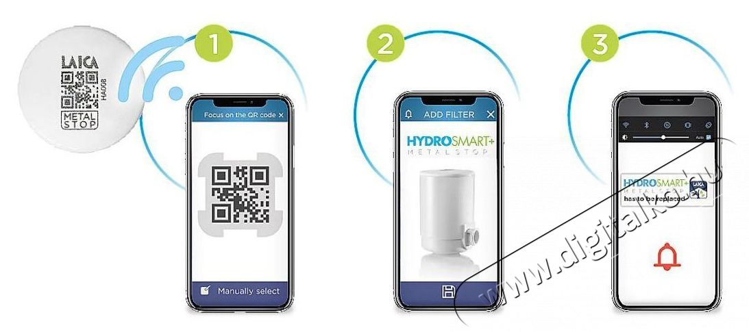 • HYDROSMART szűrőrendszer vízszűrő betét cseréjéhez használd az ingyenesen letölthető Laica Home alkalmazást!