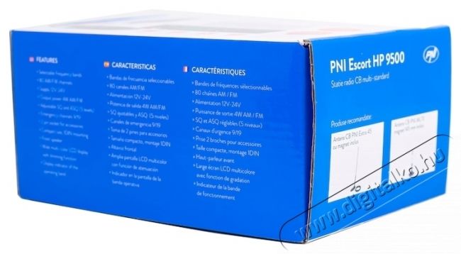 A HP 9500 PNI Escort egy megbízható CB állomás, amely tiszta távolsági kommunikációt biztosít. AM és FM működéssel, több szabványos, 5 fokozatú automatikus zajzárással és állítható zajszűrővel, nagy, többszínű háttérvilágítású kijelzővel a HP 9500 minden alapvető funkcióval rendelkezik, amely a CB sávos kommunikációhoz szükséges. Az előlapon egy 2 tűs Kenwood csatlakozó található az állomás kihangosított használatához.