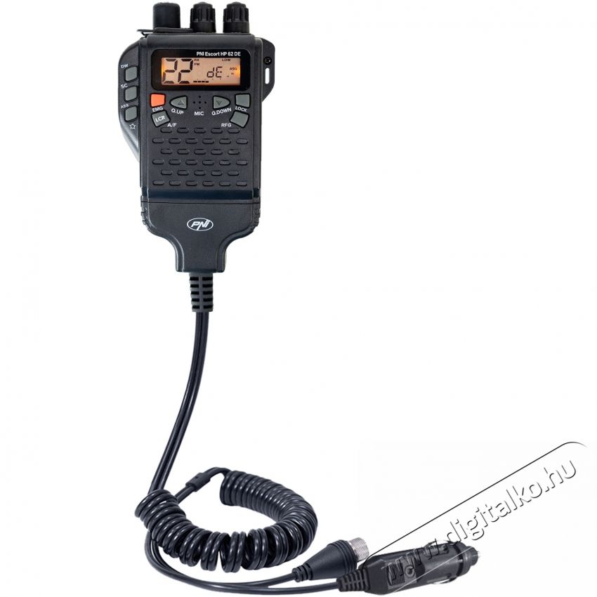 Hordozható CB rádióállomás PNI Escort HP 62DE német változat, több szabvány, 4W, 12V, AM-FM, ASQ 5 szinten állítható, RF Gain 9 szinten, Dual Watch, Scan, Lock